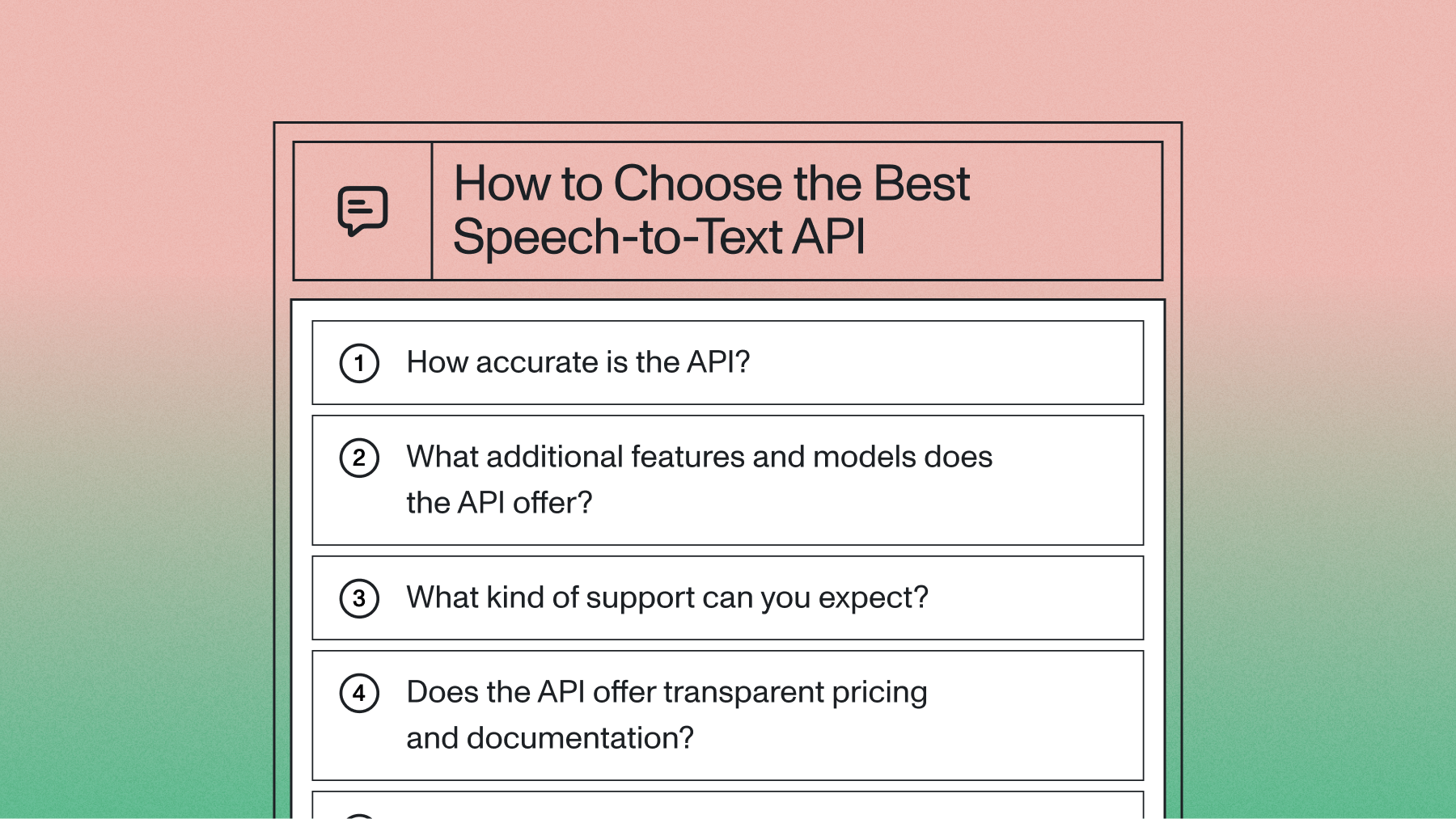 Taking the time to do research now will set you up for long-term success with your Speech-to-Text API partner.