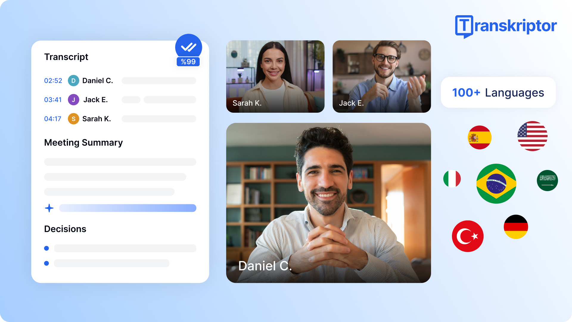 Transkriptor is an AI-powered transcription and summarization platform supporting 100+ languages, making it the strongest multilingual option. It's ideal for international teams, multilingual research, and businesses operating across non-English markets.