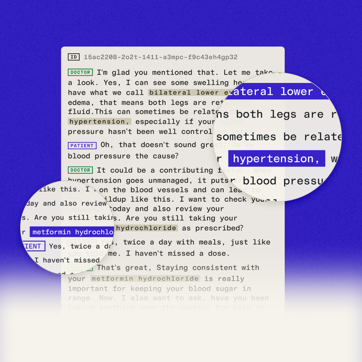 - Separate every voice in the encounter — provider, patient, and staff accurately identified across the full visit