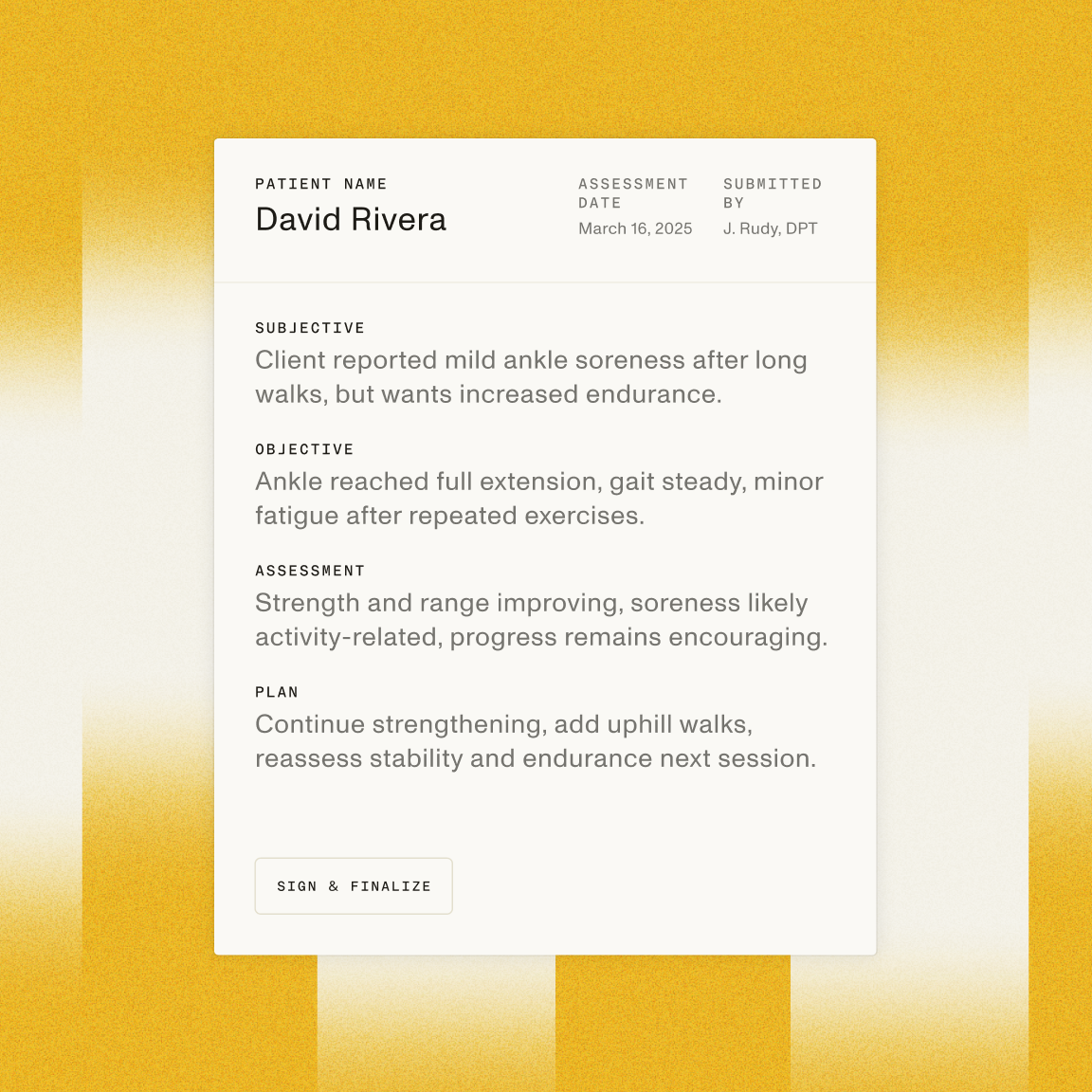 - Generate EHR-ready output automatically — PHI stripped, SOAP structured, and ready for your downstream systems